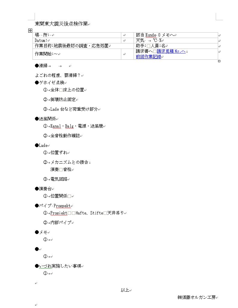 地震直後、「真先にオルガンを見に行きました」という担当者もおられ、この災害の中オルガンを大切に思って下さっていることをうれしく思った次第です。